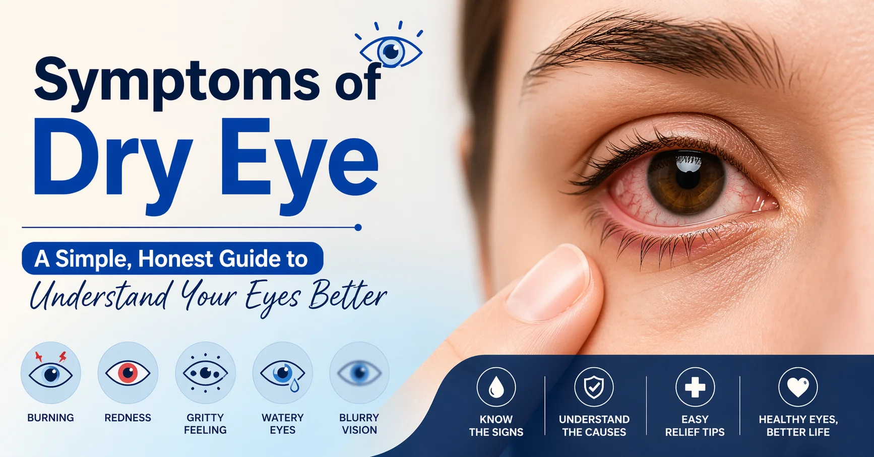 The symptoms of dry eye often start slowly. You may feel mild irritation or tired eyes. Later, it can turn into burning, redness, or blurred vision. The good news is that this condition is manageable with proper care. Let’s explore everything step by step so you can clearly understand what your eyes are telling you.